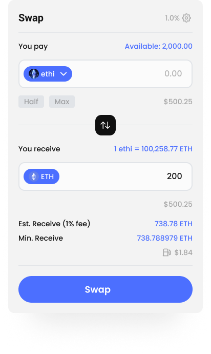 Enter the amount of $ethi you desire to swap.