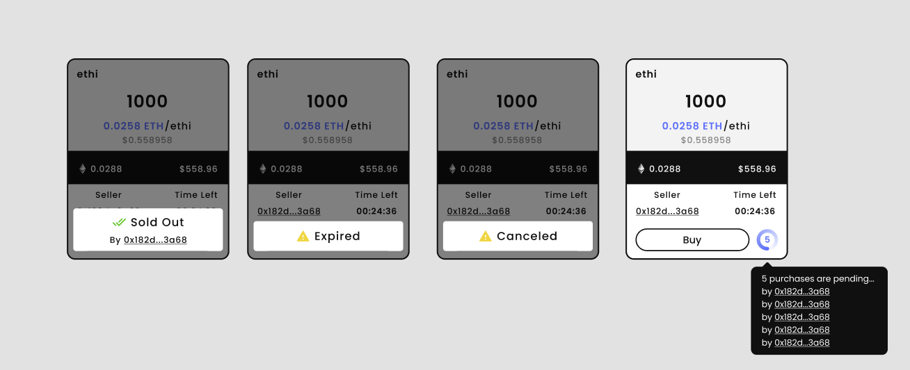 1. **Sold Out**: The order has been sold, click on the address to view the transaction details;&#x20;
