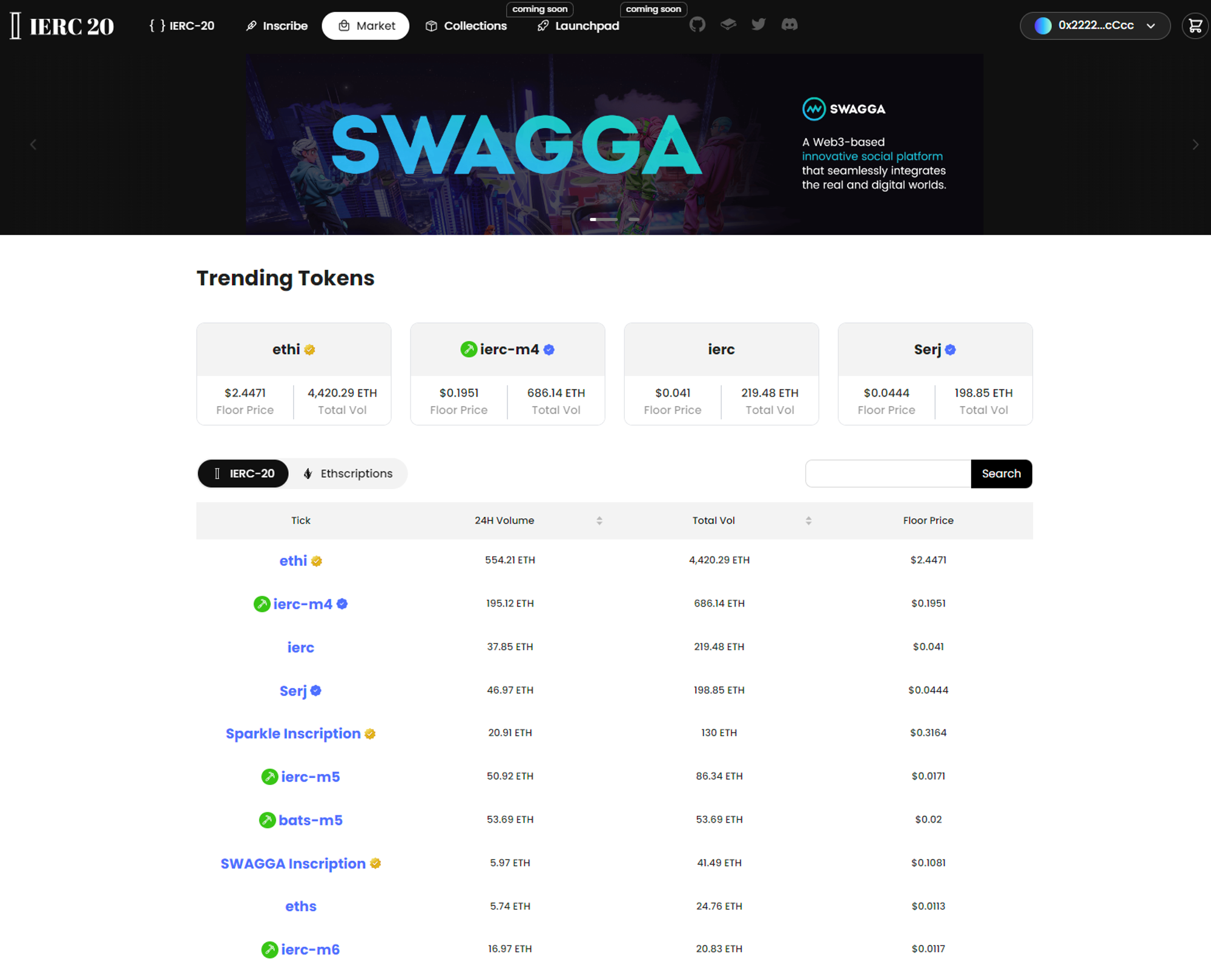 Go to <https://app.ierc20.com/market> and browse the market. First, you need to connect to your wallet and switch to the Ethereum mainnet.&#x20;